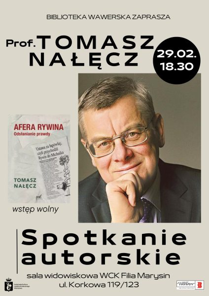 Biblioteka Wawerska zaprasza na wieczór autorski profesora Tomasza Nałęcza, twórcy najnowszej książki pt. „Afera Rywina. Odsłanianie prawdy”.