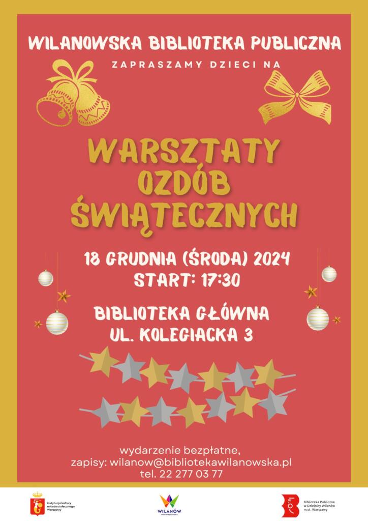 Zapisy: wilanow@bibliotekawilanowska.pl lub tel. 22 277 03 77