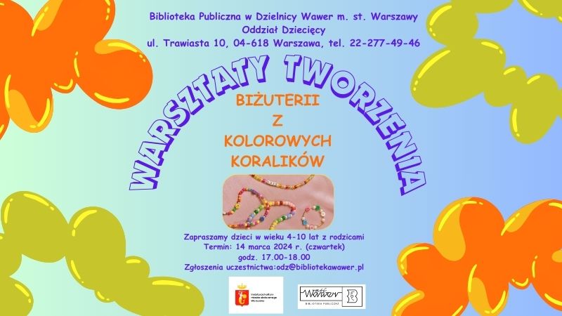 W pierwszym wiosennym miesiącu, spotkajmy się w dniu 14 marca w sali Oddziału Dziecięcego w Aninie, aby stworzyć kolorowe bransoletki, naszyjniki i wisiorki.