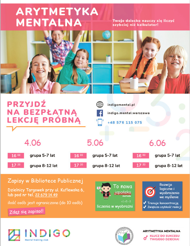 Arytmetyka mentalna to metoda obliczeń ustnych, która szybko rozwija zdolności umysłowe i inteligencję dziecka. Proces uczenia odbywa się na specjalnych liczydłach ABAKUS, które uaktywniają jednocześnie lewą i prawą półkulę mózgu, poprawiając pamięć wzrokową, koncentrację, wyobraźnię i twórcze myślenie u dzieci, ich zdolność opanowania technik szybkiego czytania.