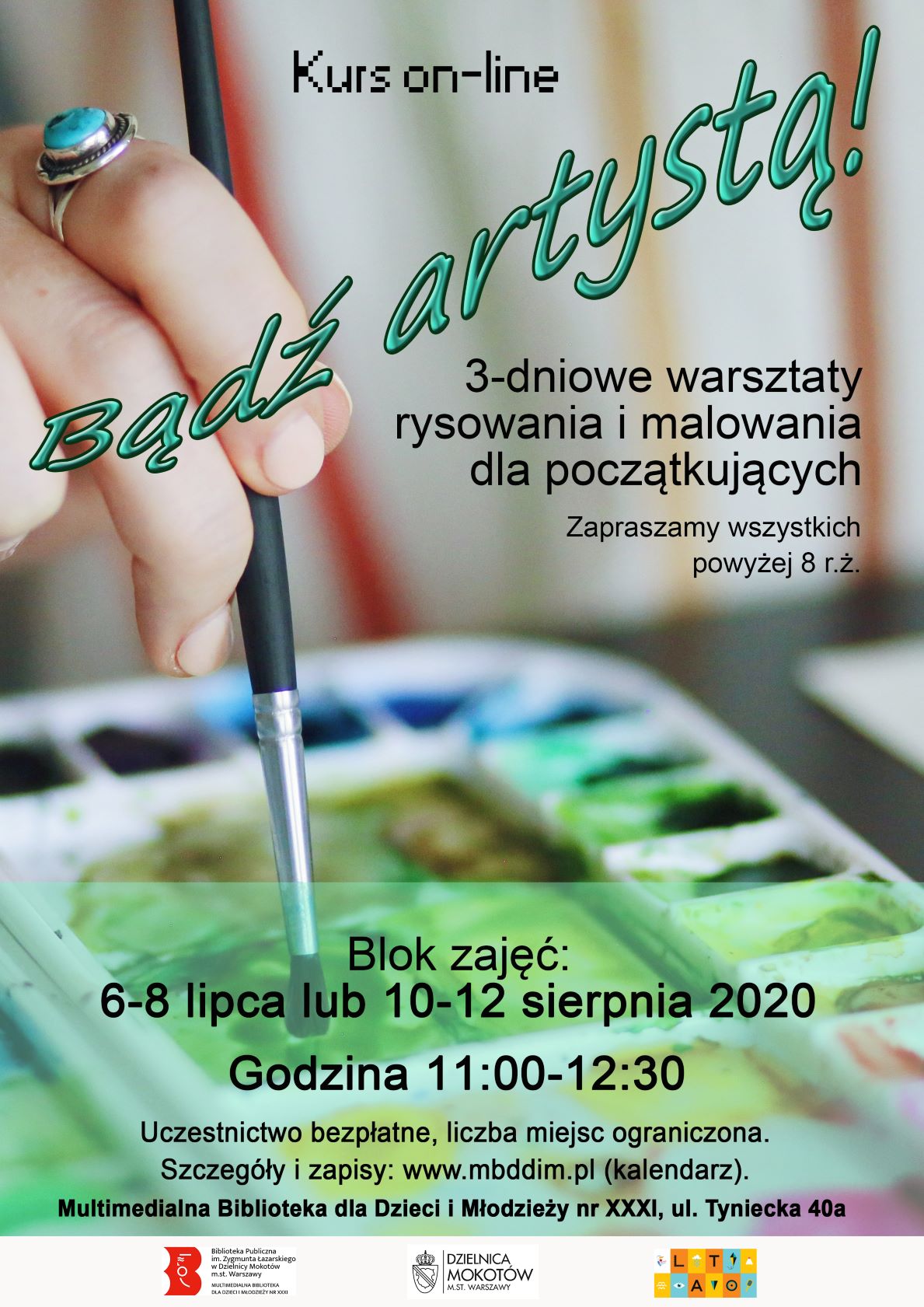 Zapraszamy dzieci powyżej 8 roku życia, młodzież i dorosłych do uczestnictwa w warsztatach sztuki rysowania i malowania dla początkujących. Zajęcia odbywać się będą w sieci przez trzy dni (po ok. 1,5 godziny). Codziennie nieco teorii i czas na własną twórczość.