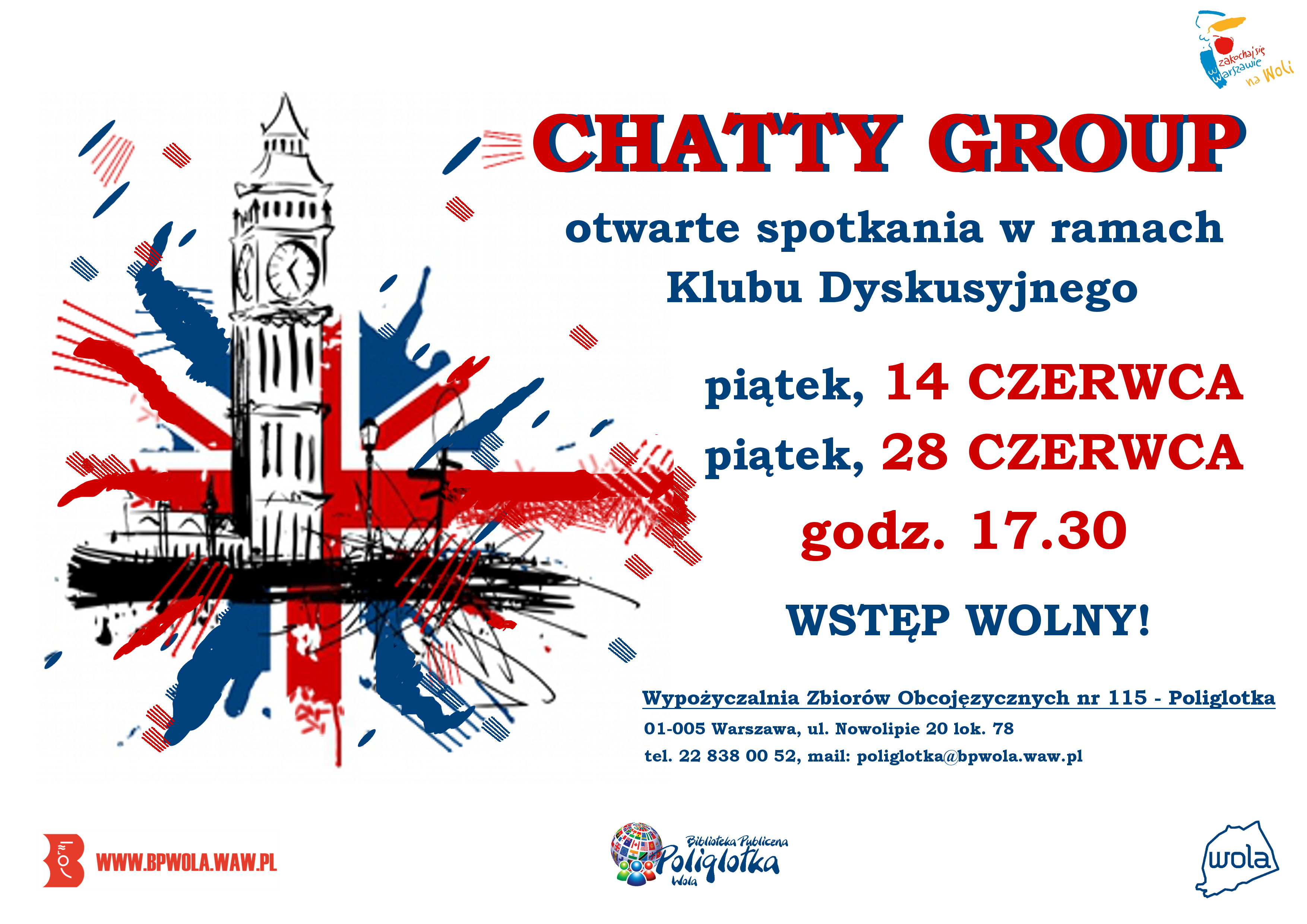 Chatty Group to otwarte spotkania w ramach klubu dyskusyjnego dla znających język angielski na poziomie B1-B2.
