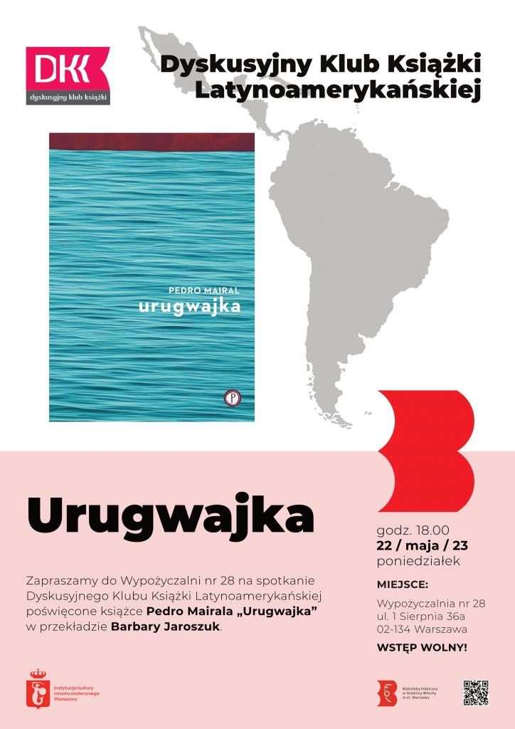 W poniedziałek 22 maja 2023 o godz. 18.00 zapraszamy do Wypożyczalni nr 28 na spotkanie Dyskusyjnego Klubu Książki Latynoamerykańskiej poświęcone książce Pedro Mairala „Urugwajka” w przekładzie Barbary Jaroszuk.