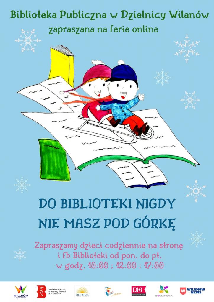 Jeśli ferie to tylko z Biblioteką. Co prawda mamy ograniczenia, ale przecież do nas nikt nie ma pod górkę! Mimo wiatru, chłodu, deszczu, niesprzyjających warunków i pandemii, obiecujemy Wam świetną zabawę bez wychodzenia z domu. Przygotowaliśmy dla Was materiały, dzięki którym spędzicie ferie naprawdę ciekawie. A zatem, zaczynamy?