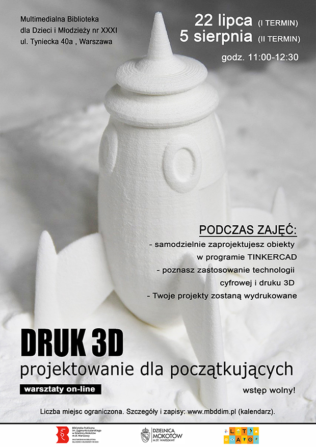 Zapraszamy dzieci powyżej 8. roku życia do udziału w warsztatach on-line „Druk 3D – projektowanie dla początkujących”.
