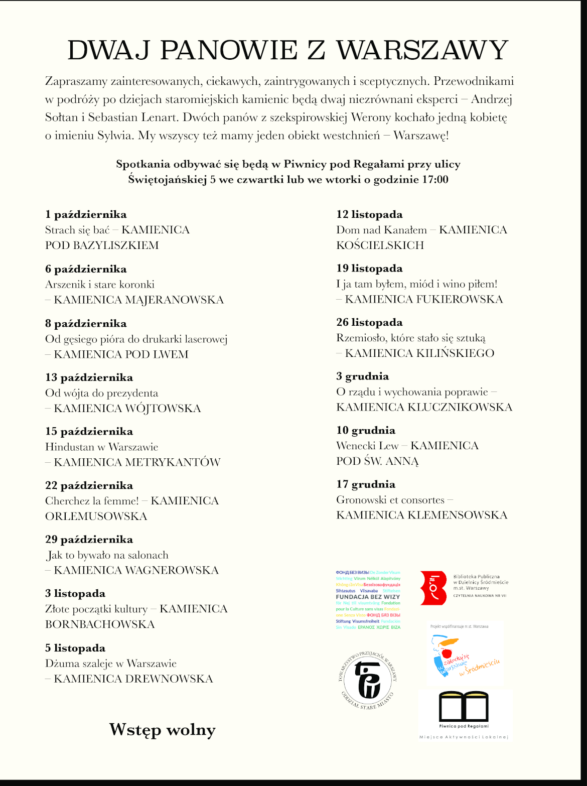 Spotkania poprowadzą varsavianiści – Andrzej Sołtan i Sebastian Lenart. Zapraszamy!