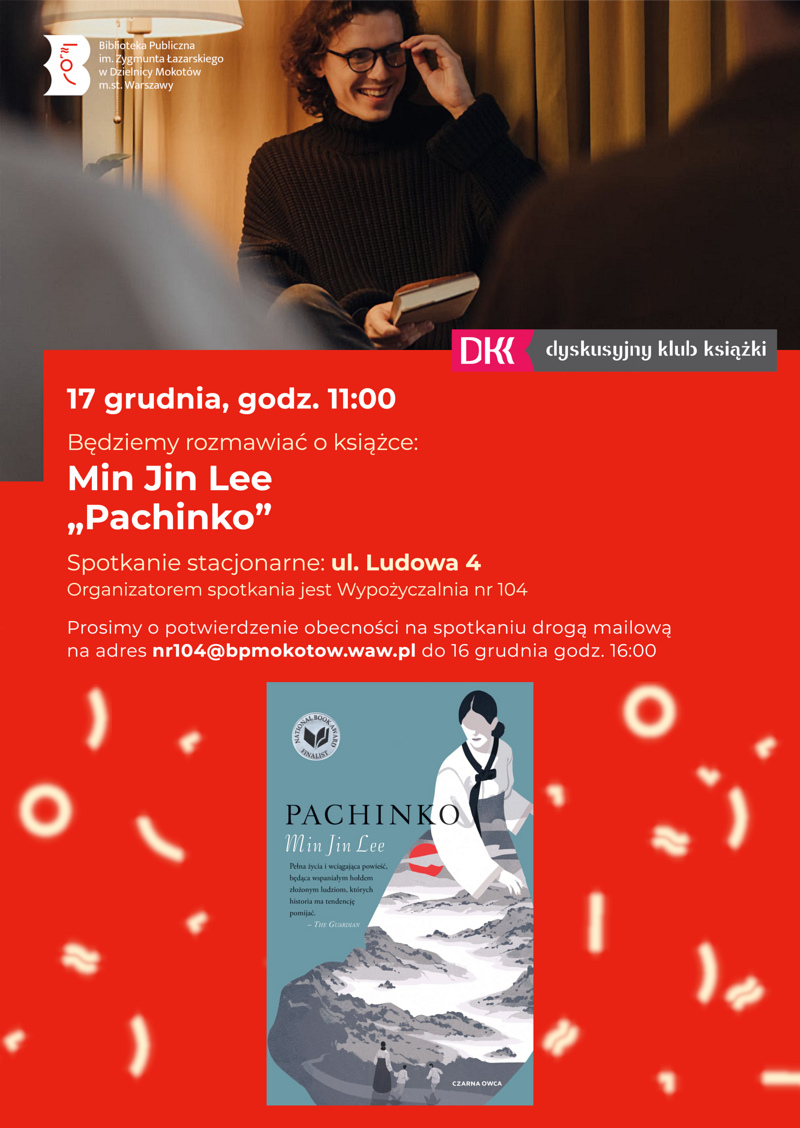 Będziemy rozmawiać o książce Min Jin Lee „Pachinko” (wypożycz tutaj).