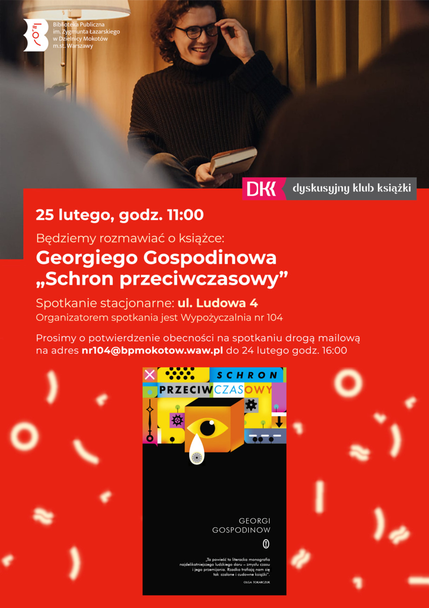 Dyskusyjny Klub Książki na Ludowej zaprasza na kolejne spotkanie stacjonarne, które odbędzie się 25 lutego o 1100 w pomieszczeniach wypożyczalni na Ludowej 4.