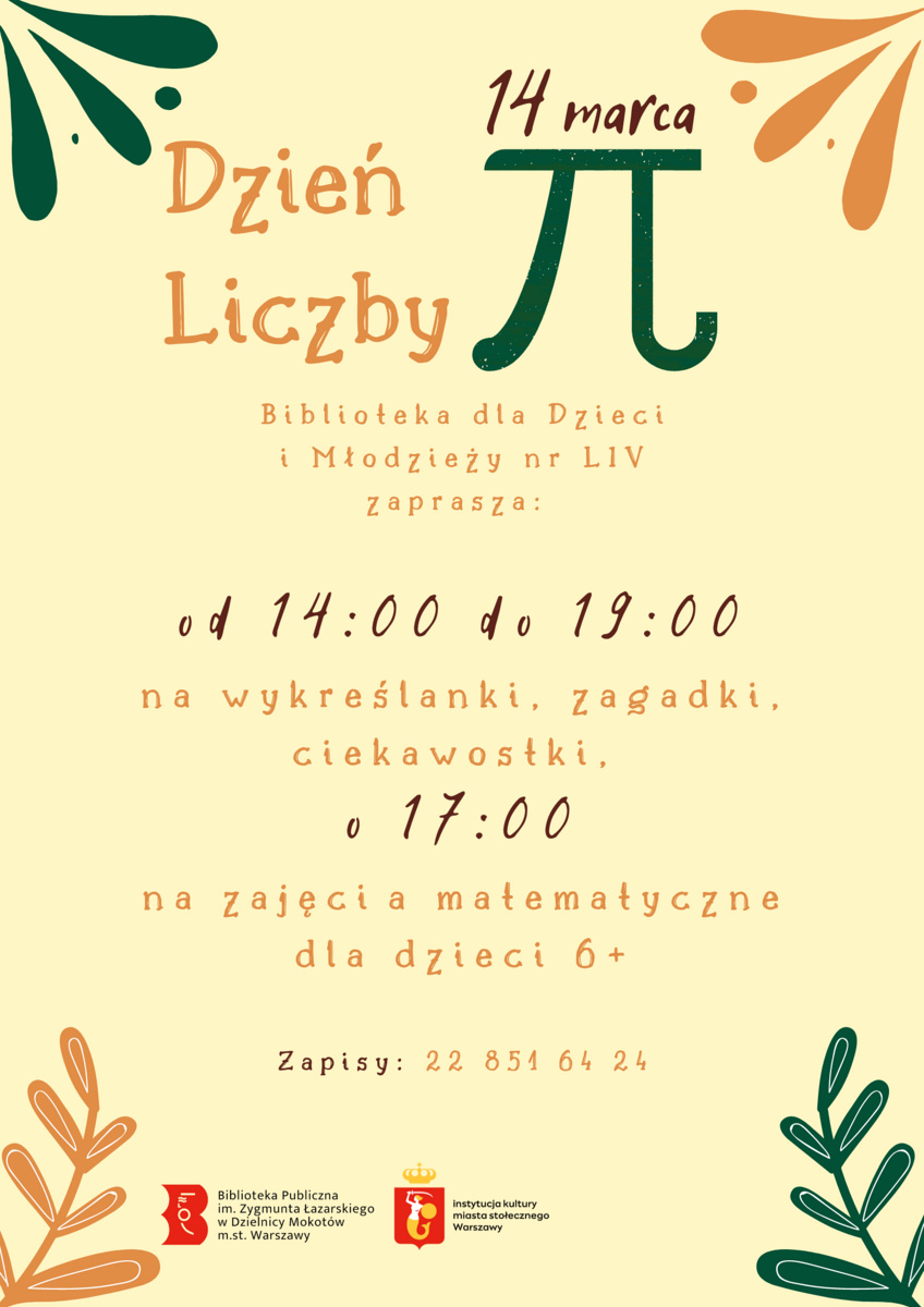 Za tydzień Biblioteka dla Dzieci i Młodzieży nr LIV obchodzi Dzień Liczby Pi! 3️⃣,1️⃣4️⃣