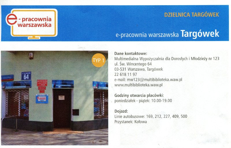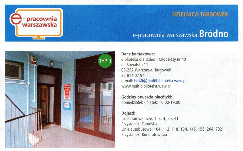 E – pracownia warszawska Targówek oraz e – pracownia warszawska Bródno utworzone zostały w ramach projektu „Argos – przeciwdziałanie wykluczeniu cyfrowemu dzieci i młodzieży w Warszawie”.