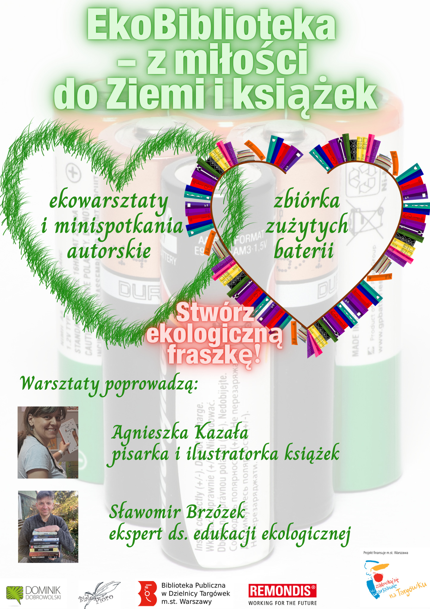 Projekt „EkoBiblioteka – z miłości do Ziemi i książek” realizowany jest przez Bibliotekę Publiczną w Dzielnicy Targówek m.st. Warszawy w partnerstwie z Agnieszką Kazałą, pisarką, ilustratorką mieszkającą i tworzącą na Targówku oraz Dominikiem Dobrowolskim, ekologiem i podróżnikiem, pomysłodawcą i organizatorem wielu znanych akcji ekologicznych w Polsce i Europie.