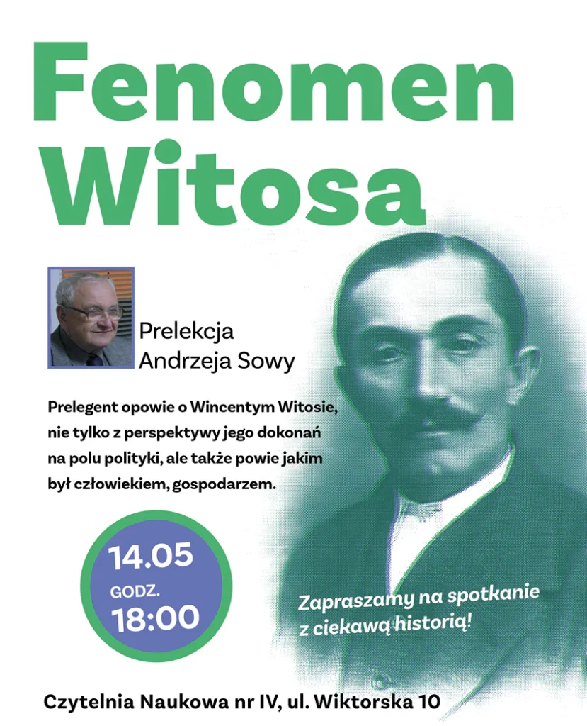 Andrzej Sowa opowie o Wincentym Witosie, nie tylko z perspektywy jego dokonań na polu polityki, ale także powie jakim był człowiekiem, gospodarzem. A, że nasz Gość jest wspaniałym gawędziarzem, będą anegdoty i ciekawostki oraz porcja ogromnej wiedzy historycznej. Prelegent podkreśla, że już sam tytuł spotkania sugeruje, że chłop, który skończył kilka klas, zrobił karierę polityczną – jest niezwykłe. Trzykrotny premier, poseł do sejmu galicyjskiego, wiedeńskiego oraz polskiego, a jednocześnie zawsze uważał się za chłopa.