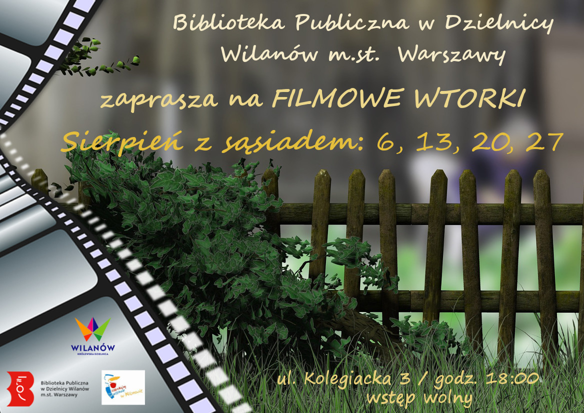 Połowa wakacji za nami. Raz za oknem świeci piękne słońce, innym razem pogoda nas nie rozpieszcza. My jednak niezmiennie zapraszamy we wtorki o godzinie 18:00 do Biblioteki przy ul. Kolegiackiej 3 na wieczorne pokazy filmowe.