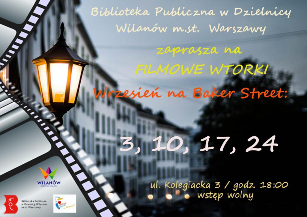 We wtorkowe wieczory o godzinie 18:00 zapraszamy amatorów dobrego kina i koneserów filmów, zapadających w pamięć historii na ul. Kolegiacką 3 na Filmowe wtorki. Podczas „Września na Baker Street” wyświetlimy emocjonujące filmy o zagadkach kryminalnych.