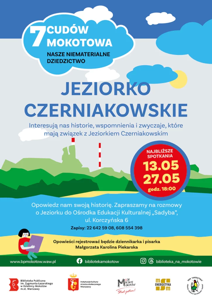 Chcemy zainspirować wszystkich do odkrywania dziedzictwa, tradycji i historii Mokotowa. Rozmowy zaczęliśmy od wspomnień i zwyczajów związanych z Jeziorkiem Czerniakowskim i będziemy je kontynuować w najbliższy poniedziałek.
