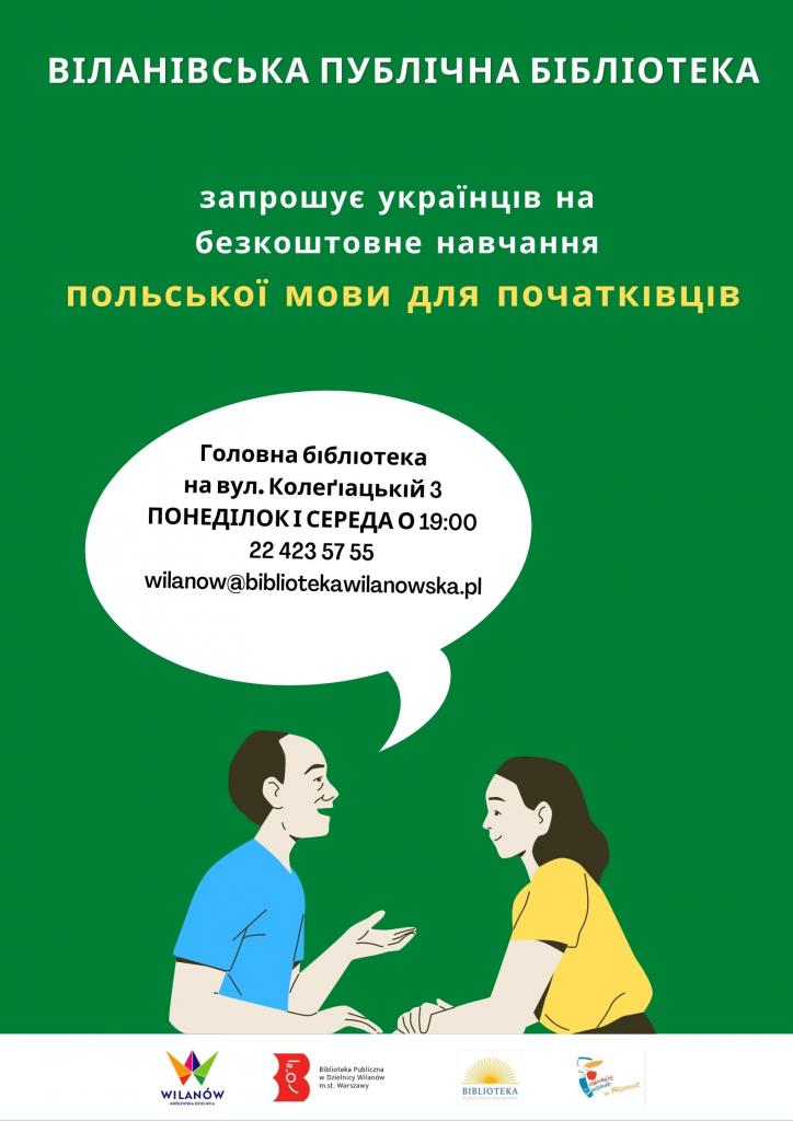 Obywateli Ukrainy chcących poznać język polski zapraszamy w poniedziałki i środy o godz. 19:00 do Biblioteki Głównej przy ul. Kolegiackiej 3 na prowadzony przez wolontariusza lektorat. Na zajęcia obowiązują zapisy.