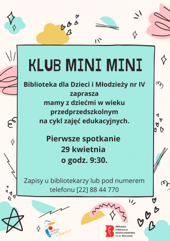 Biblioteka dla Dzieci i Młodzieży nr IV zaprasza mamy z dziećmi w wieku 2+, które nie uczęszczają do przedszkola, na cykl zajęć edukacyjnych i wspólną zabawę.