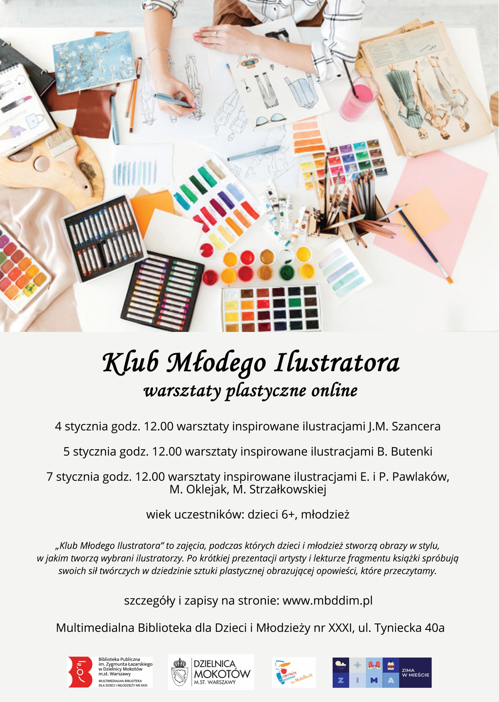 Multimedialna Biblioteka dla Dzieci i Młodzieży nr XXXI zaprasza do uczestnictwa w warsztatach plastycznych online w ramach akcji „Zima w mieście 2021”.