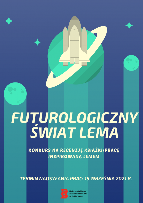 Z tej okazji Biblioteka Publiczna w Dzielnicy Białołęka m.st. Warszawy zaprasza do udziału w konkursie Futurologiczny świat Lema. Zainspiruj się pisarzem i stwórz własne dzieło! Napisz recenzję książki Lema, stwórz film, prezentację multimedialną, nagranie, obraz w dowolnej technice, komiks. Zaprojektuj okładkę książki Lema, nagraj słuchowisko, piosenkę, inny dźwięk…