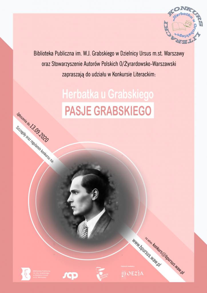 Utwory można nadsyłać do 13 września 2020 r. na adres: konkurs@bpursus.waw.pl lub na adres: Biblioteka Publiczna im. W.J. Grabskiego w dzielnicy Ursus m. st. Warszawy, ul. Plutonu AK Torpedy 47, 02-495 Warszawa z dopiskiem na kopercie – Konkurs Literacki „Herbatka u Grabskiego – pasje Grabskiego”.