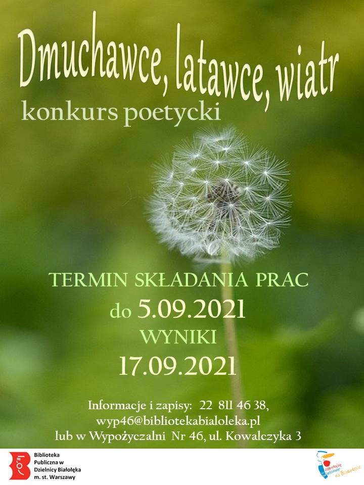 Wypożyczalnia Nr 46 zaprasza miłośników poezji do udziału w konkursie pt.: „Dmuchawce, latawce, wiatr”. ![]()