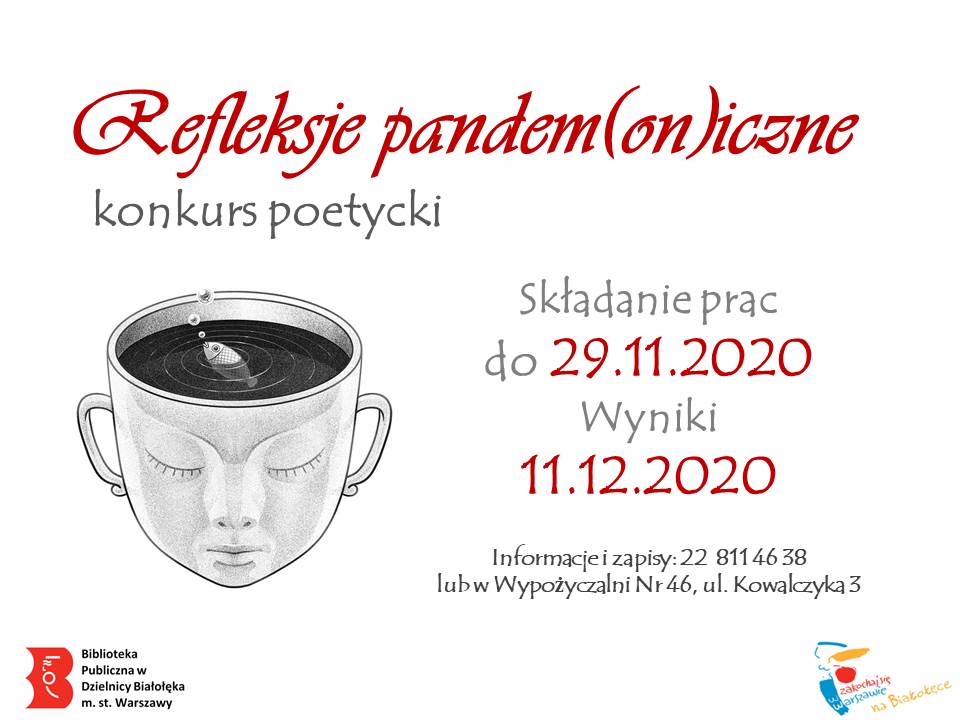 Wypożyczalnia Nr 46 zaprasza wszystkich miłośników poezji na kolejną edycję konkursu pt.: „Refleksje pandem(on)iczne”. Kochani temat nie jest nam obcy a nawet bliski.
