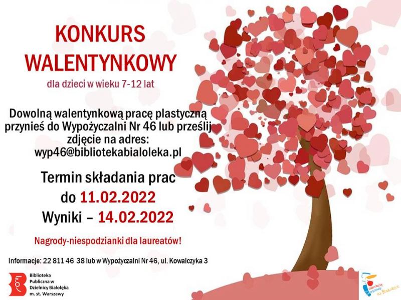 Serdecznie zapraszamy do wzięcia udziału w konkursie walentynkowym! Konkurs przeznaczony jest dla dzieci w wieku 7-12 lat.