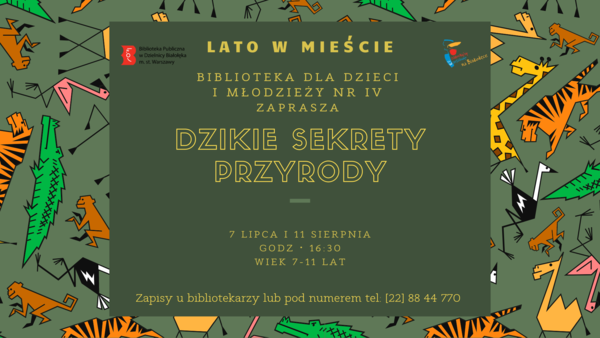 Zapisy pod numerem tel. : 22 884-47-70 lub bezpośrednio u bibliotekarza. Liczba miejsc ograniczona.