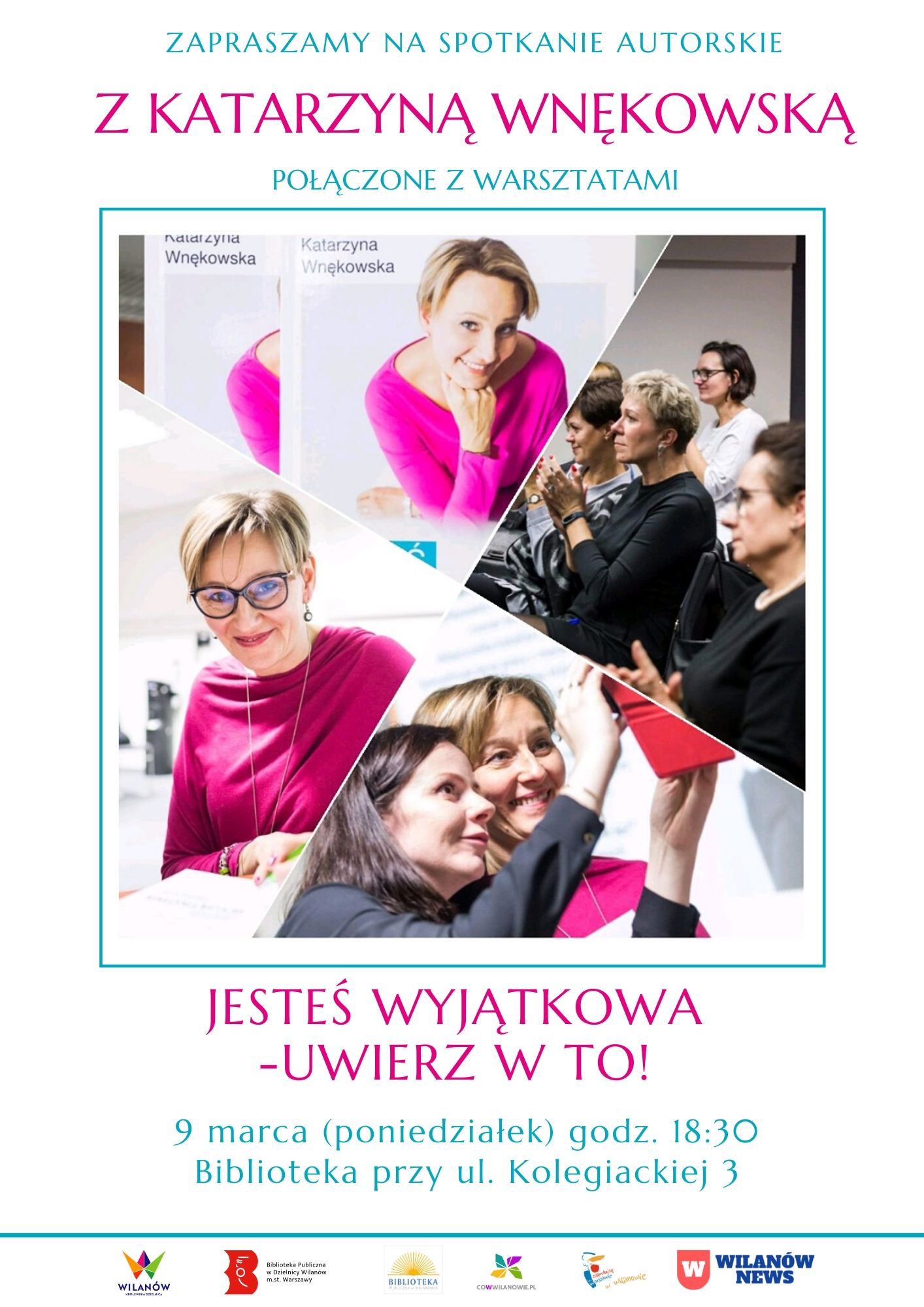 9 marca o godzinie 18:30 zapraszamy wszystkie panie i nie tylko na ul. Kolegiacką 3 na Literacki Poniedziałek z Katarzyną Wnękowską. Certyfikowany coach, trener biznesu oraz autorka książki „Jesteś Wyjątkowa – Uwierz w to!” opowie o tym, jak odkrywać i rozwijać swój talent, ufać intuicji oraz żyć szczęśliwiej. Rozmowie o książce będą towarzyszyć krótkie warsztaty.