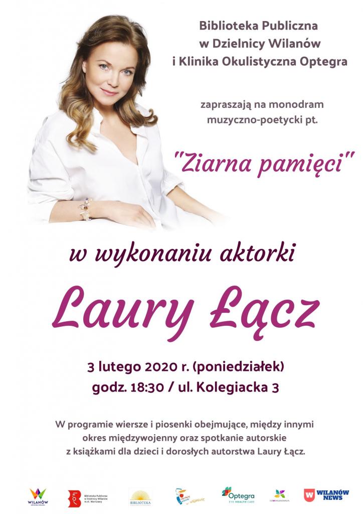 Biblioteka Główna przy ul. Kolegiackiej 3 i Klinika okulistyczna Optegra, zapraszają na monodram poetycko-muzyczny „Ziarna pamięci” w wykonaniu aktorki Laury Łącz. Literacki Poniedziałek odbędzie się 3 lutego o godzinie 18:30. W programie m.in. piosenki i poezja okresu XX-lecia międzywojennego. Po występie Laura Łącz podpisywać będzie swoje książki dla dzieci i dorosłych.