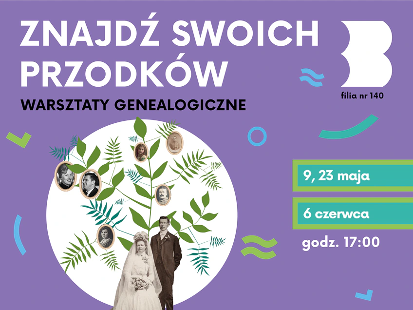 Biblioteka Mokotów zaprasza na co dwutygodniowy cykl spotkań literacko-genealogicznego punktu konsultacyjnego. Prowadzi go Małgorzata Karolina Piekarska, pisarka, dziennikarka, genealożka i historyczka sztuki. Podczas indywidualnych rozmów podpowie, gdzie szukać informacji o rodzinnych korzeniach, a także jak pisać o swoich przodkach.