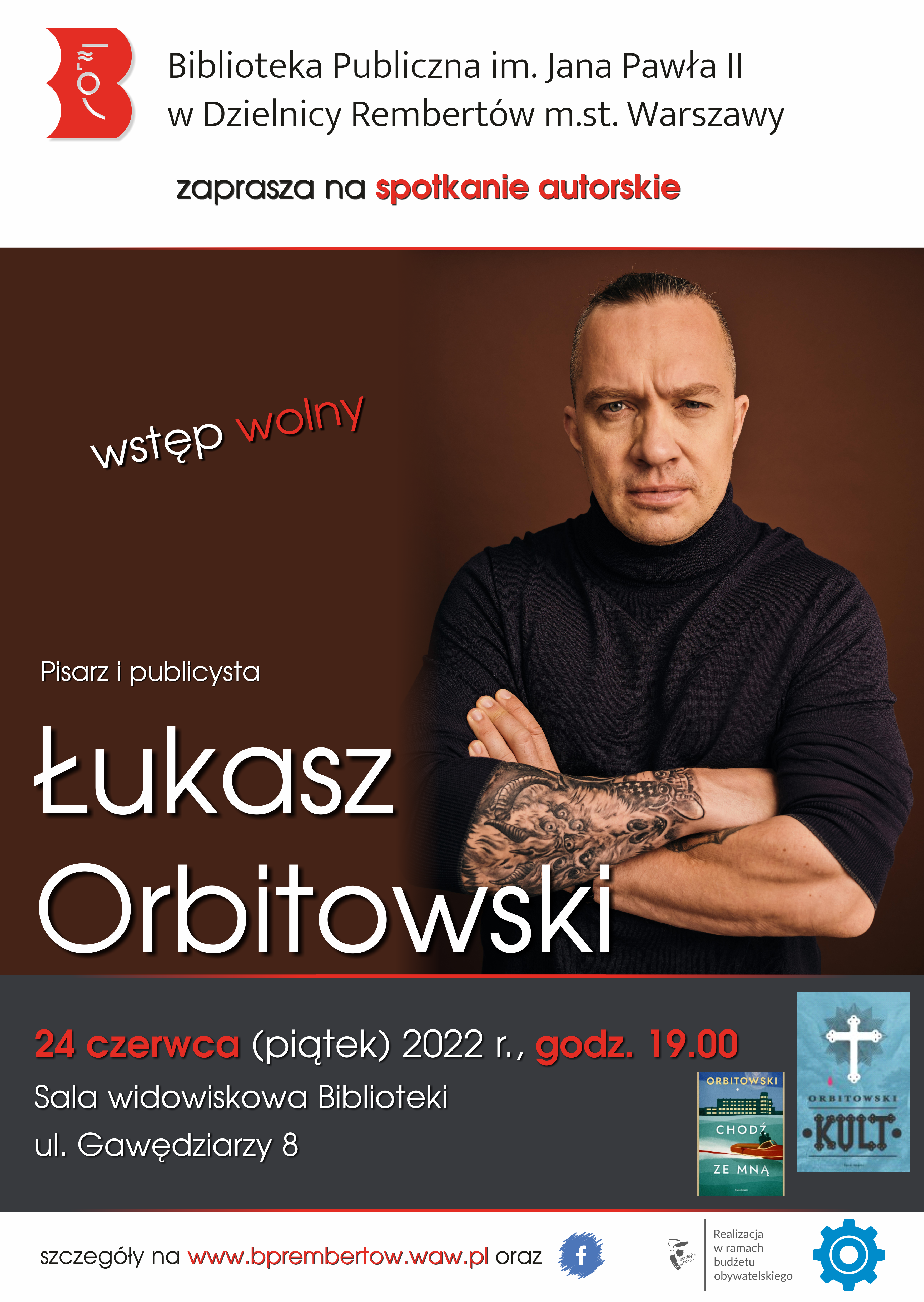 Łukasz Orbitowski jest laureatem Paszportu „Polityki”, Nagrody Zajdla i Nagrody Literackiej m.st. Warszawy, w swojej pisarskiej karierze uzyskał także nominacje między innymi do Nagrody Literackiej Gdynia oraz „Nike”. Początkowo specjalizował się w literaturze grozy i fantastyce, i choć nadal porusza się w tej tematyce, to raczej jako publicysta i influencer, ponieważ najnowszymi powieściami odchodzi od wcześniejszego nurtu twórczości. Wciąż oczarowani „Kultem”, poprzednią, szeroko komentowaną i nagradzaną powieścią, nie możemy się doczekać rozmowy o nowej książce Łukasza Orbitowskiego: „Chodź ze mną”, która ukazała się w ostatnich dniach maja.