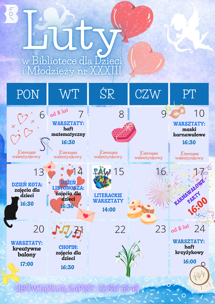 Świętujemy najkrótszy miesiąc pełen miłości! Zapraszamy na 💝 Luty w Bibliotece dla Dzieci i Młodzieży nr XXXIII!