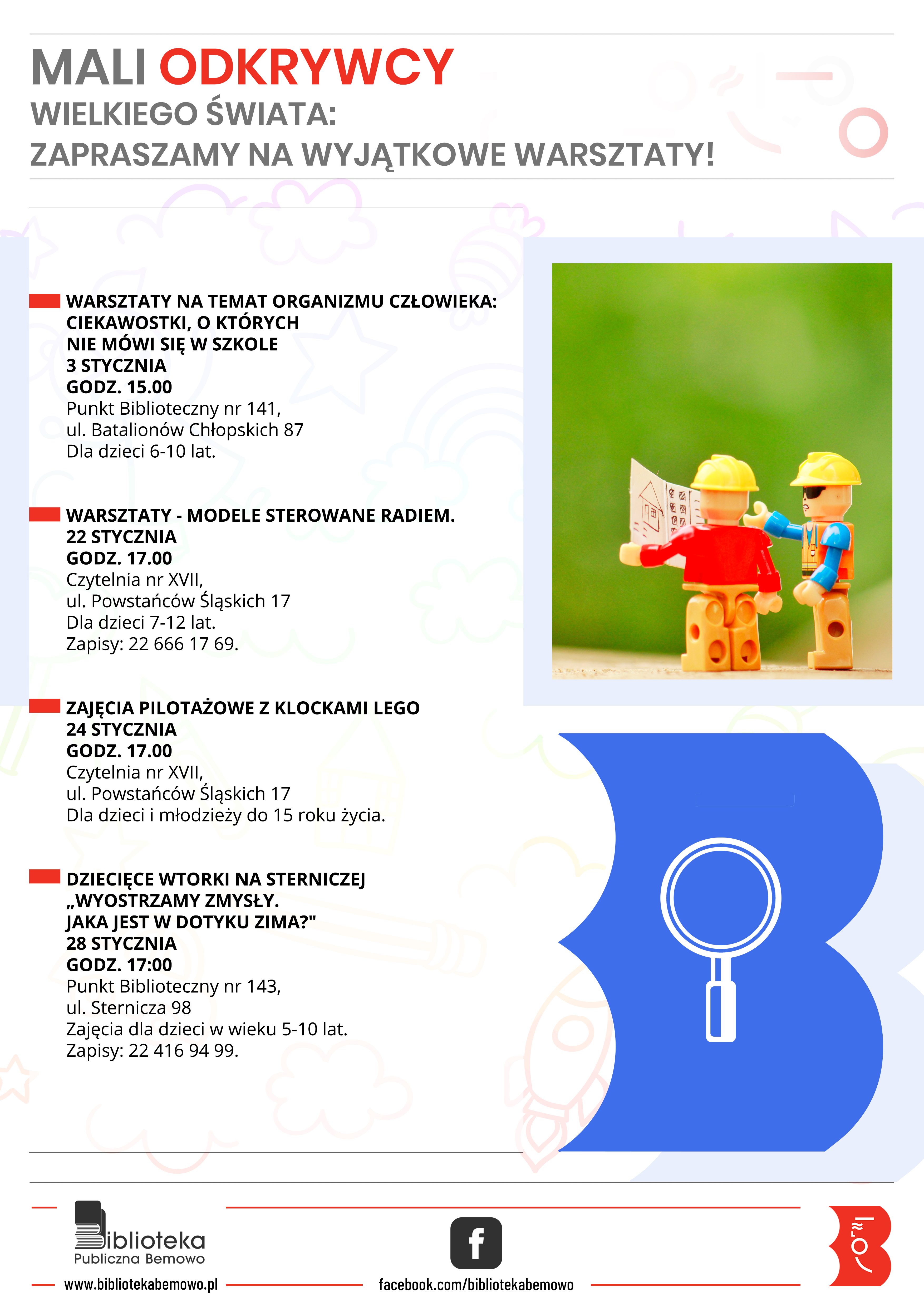 W styczniu, najmłodszych i tych nieco starszych, zachęcamy do udziału w warsztatach na temat organizmu człowieka oraz w spotkaniu z modelami sterowanymi radiem.