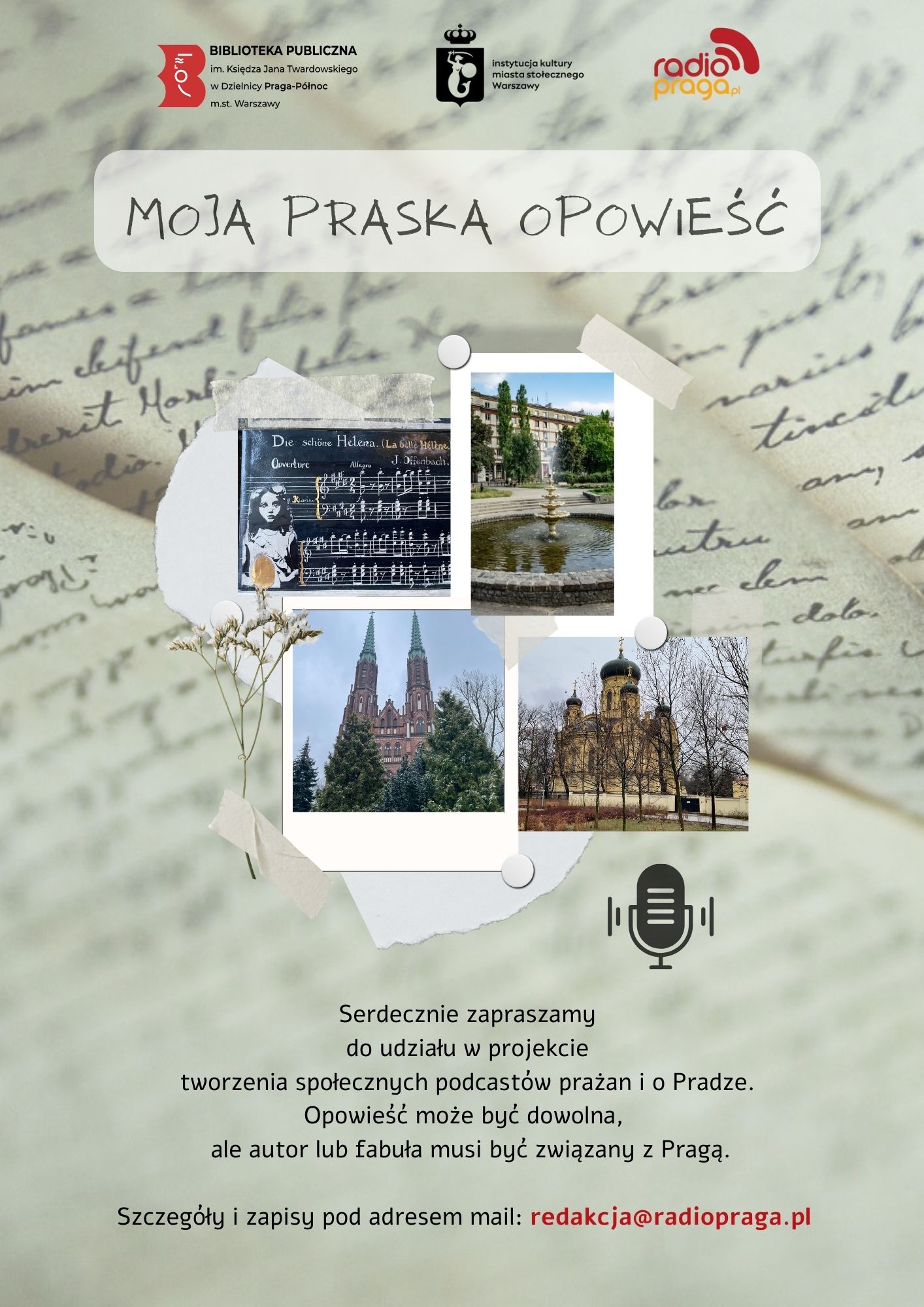 Biblioteka Publiczna im. Księdza Jana Twardowskiego w Dzielnicy Praga Północ m.st. Warszawy we współpracy z Radiem Praga zaprasza czytelników i słuchaczy do udziału w projekcie „Moja praska opowieść ”. Projekt dotyczy tworzenia społecznych podcastów prażan i o Pradze.