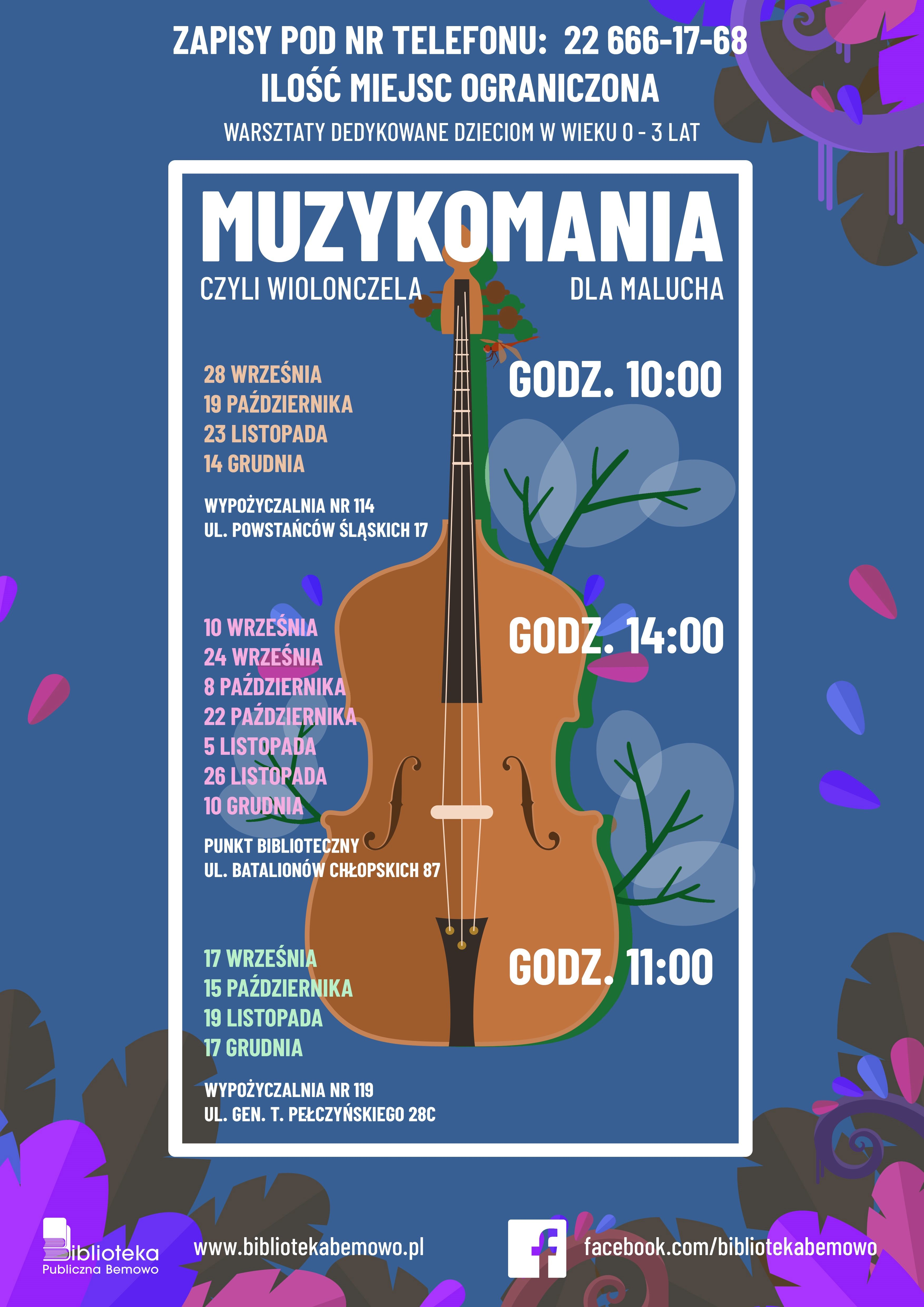 Biblioteka Publiczna w Dzielnicy Bemowo chciałaby zaprosić rodziców wraz z maluchami na najnowszą edycję Muzykomanii – zajęć z wiolonczelą dla dzieci.