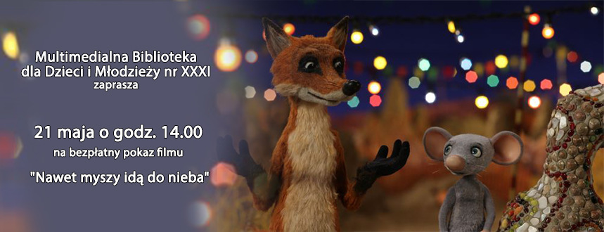 Multimedialna Biblioteka dla Dzieci i Młodzieży nr XXXI zaprasza 21 maja (sobota) o godz. 14:00 na bezpłatny pokaz filmu „Nawet myszy idą do nieba”.