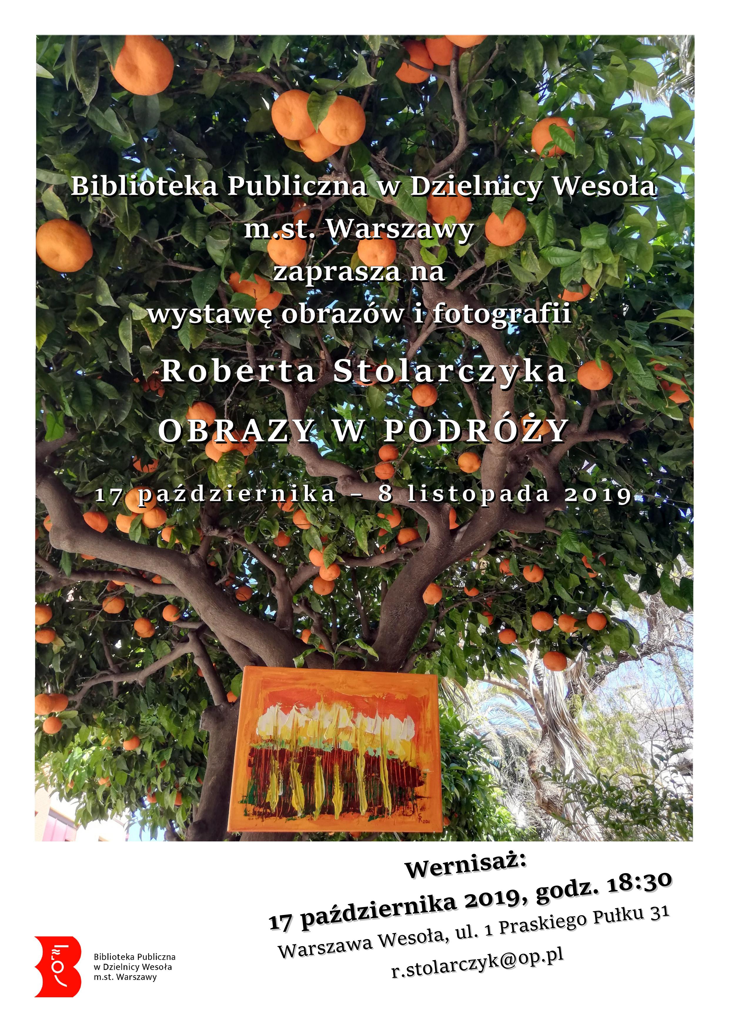 Wernisaż wystawy odbędzie się 17 października 2019, o godzinie 18:30 w Bibliotece Głównej w Wesołej, ul. 1 Praskiego Pułku 31.
