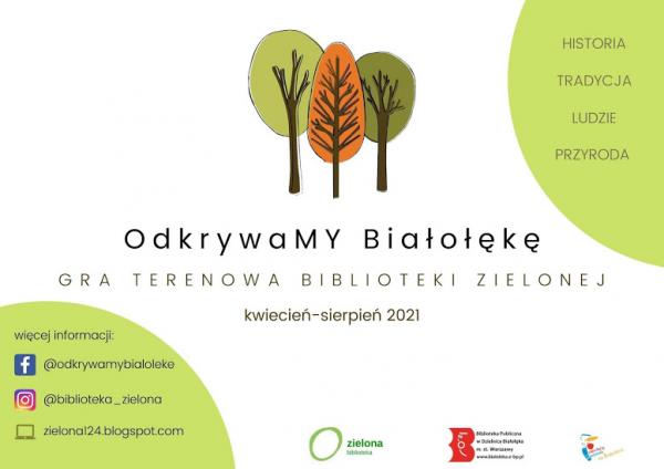Właśnie ruszyła gra terenowa „OdkrywaMY Białołękę”, organizowana przez Bibliotekę Zieloną. Serdecznie zapraszamy do uczestniczenia w zabawie i odwiedzania na rowerach ciekawych miejsc na Białołęce i najbliższej okolicy. Będziemy wspólnie odkrywać nie tylko miejsca, ważne dla dzielnicy z powodów historycznych, przyrodniczych, kulturowych, ale i ludzi! Po drodze — od kwietnia do sierpnia — wiele atrakcji i niespodzianek 🙂 Więcej na blogu i FB projektu @odkywamybialoleke