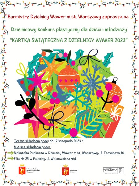 Konkurs dla dzieci i młodzieży na „Wawerską Kartkę Świąteczną z Dzielnicy Wawer 2023” otwarty!