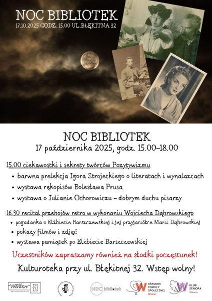 Tegoroczna edycja ogólnopolskiej Nocy Bibliotek odbywa się pod hasłem „Do dzieła!”. Z tego powodu Biblioteka Wawerska przygotowała program wokół szeroko pojętego Pozytywizmu, z akcentem na, nomen omen, pozytywne strony – aktywność, postępowość, ciekawość świata, inwencję i inicjatywę a niekoniecznie samą pracę u podstaw. Podczas wydarzenia Igor Strojecki, badacz dziejów i genealog, z werwą opowie o Read the full article...
