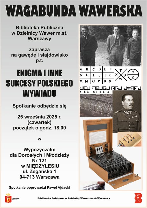 Serdecznie zapraszamy miłośników historii na kolejną pogadankę Pawła Ajdackiego z cyklu Wagabunda Wawerska. Prelekcja i pokaz slajdów odbędą się 25 września o godz. 18.00 w bibliotece w Międzylesiu przy ul. Żegańskiej 1. Wstęp wolny!