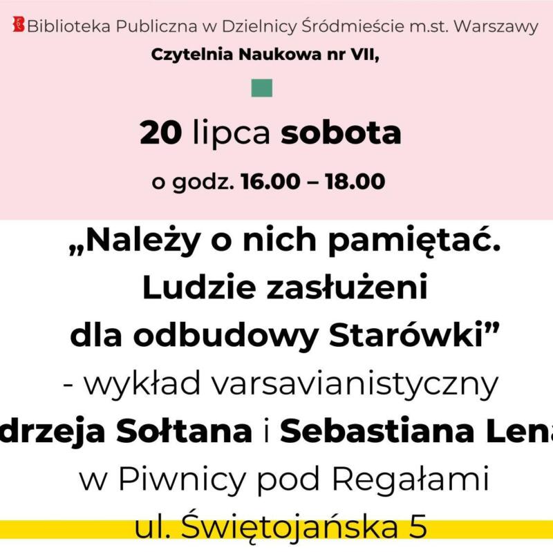 Należy o nich pamiętać. Ludzie zasłużeni dla odbudowy Starówki – wykład w Śródmieściu