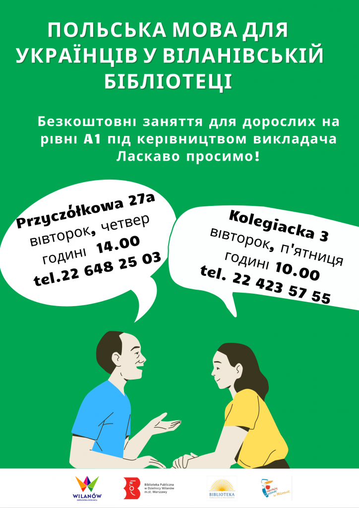 Biblioteka Główna przy ul. Kolegiackiej 3 i filia przy ul. Przyczółkowej 27a zapraszają obywateli Ukrainy na bezpłatny lektorat „Polski krok po kroku” na poziomie A1. Trwające 1,5 godziny zajęcia będą odbywały się dwa razy w tygodniu. Chętnych do udziału w spotkaniach prosimy o wcześniejsze zapisy.