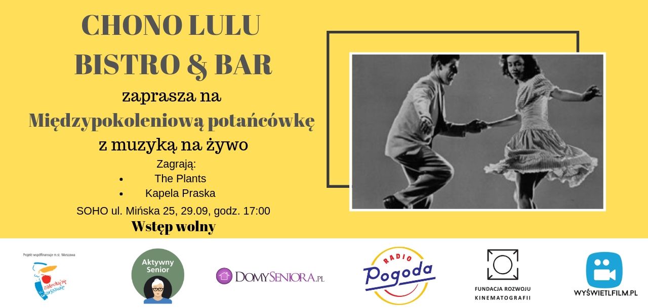 Zwieńczeniem projektu będzie Międzypokoleniowa Potańcówka z muzyką na żywo w Chono Lulu Bistro & Bar przy ul. Mińskiej 25 w niedzielę 29 września 2019 o godzinie 17:00.