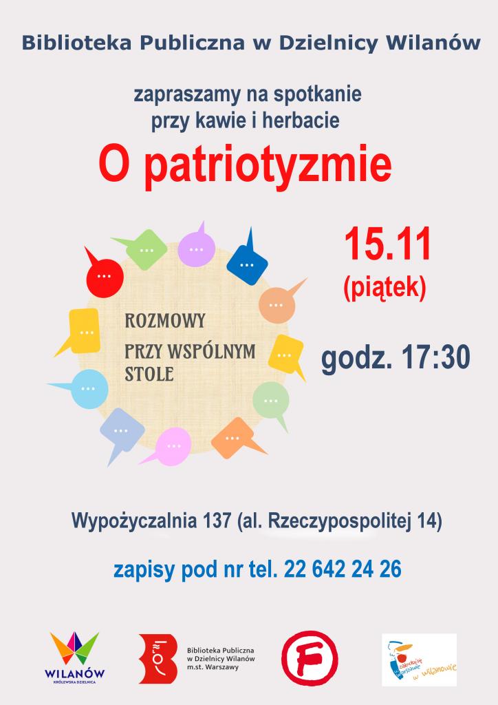 Tematem spotkania będzie patriotyzm. Porozmawiamy o tym, jak rozumiemy ten termin. Odpowiemy sobie na pytanie, czy łatwo przekazywać patriotyczne postawy oraz jak je kształtować u dzieci i młodzieży? Zastanowimy się również jak zmieniało się pojęcie patriotyzmu. Jak wygląda współczesny patriotyzm? Czym dzisiaj możemy wyrazić naszą miłość i przywiązanie do ojczyzny?
