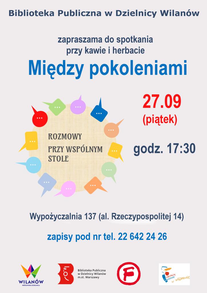 27 września (piątek) o godzinie 17:30 filia Biblioteki w Miasteczku Wilanów przy al. Rzeczypospolitej 14, zaprasza na kolejną odsłonę „Rozmów przy wspólnym stole”.