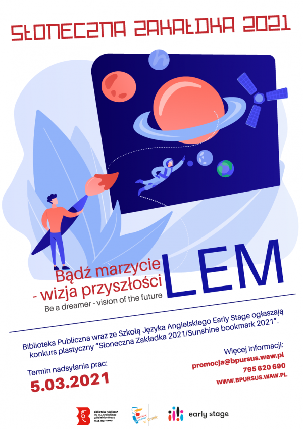 Biblioteka Publiczna w Ursusie oraz Szkoła Języka Angielskiego Early Stage ogłaszają konkurs plastyczny “Słoneczna Zakładka 2021/Sunshine bookmark 2021”.