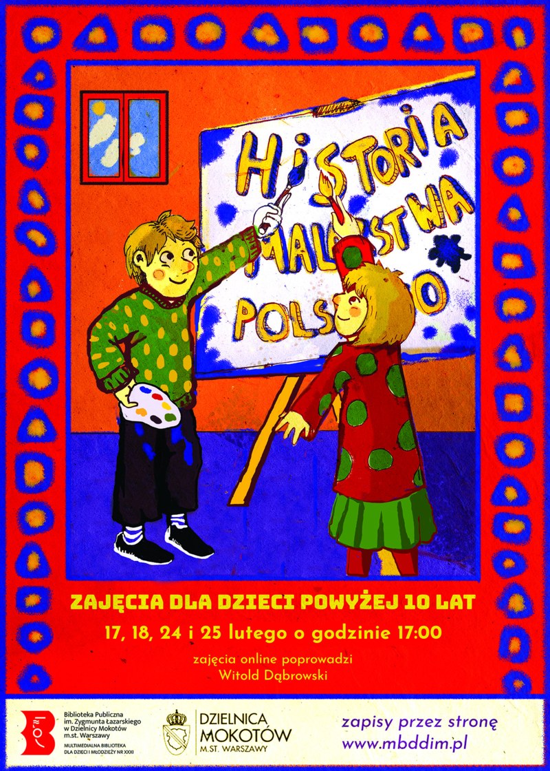 Historia malarstwa polskiego to cykl czterech godzinnych spotkań, w trakcie których Witold Dąbrowski – grafik, ilustrator i artysta wizualny – przybliży najważniejsze postaci w polskiej sztuce XIX i XX wieku. Każde zajęcia oprócz przybliżenia biografii danej postaci wzbogacone będą o rozbudowane materiały wizualne oraz kontekst historyczno-kulturowy oraz prace do wykonania w domu. Za każdym razem poznamy także zupełnie nowe pojęcia z dziedziny historii sztuki.