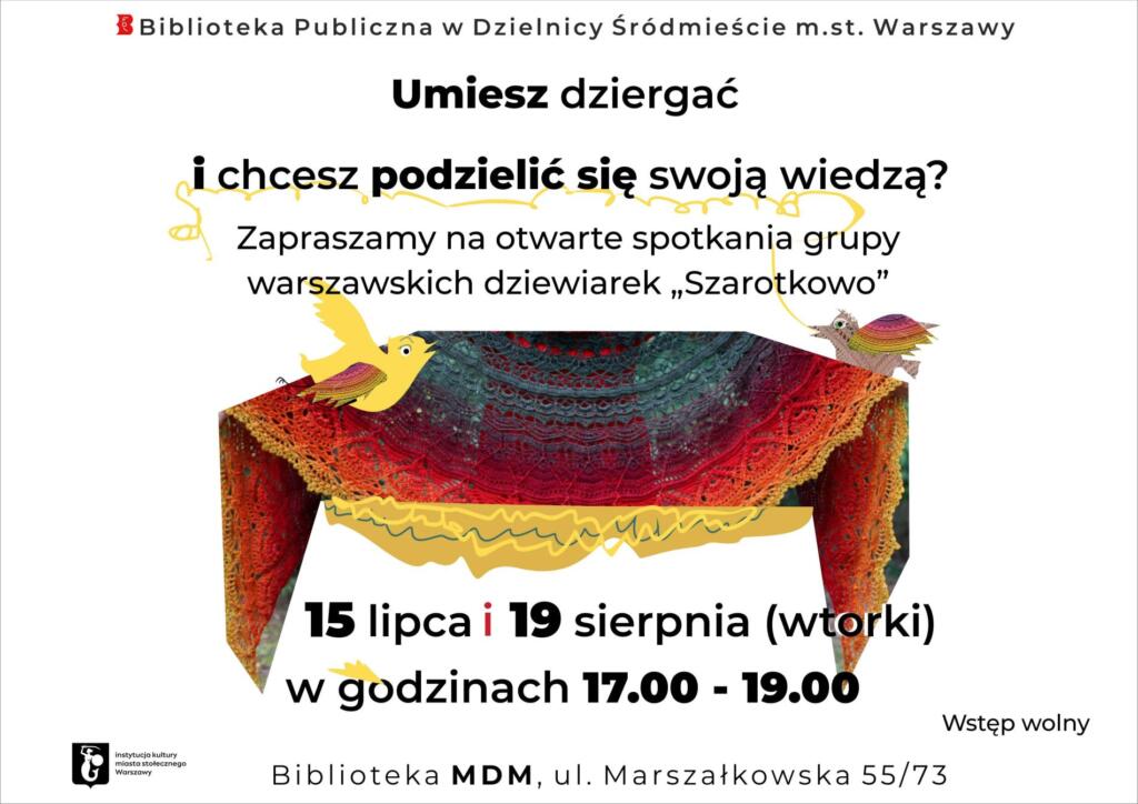 Spotkamy się w Bibliotece MDM przy ul. Marszałkowskiej 55/73 w dniach 15 lipca i 19 sierpnia.